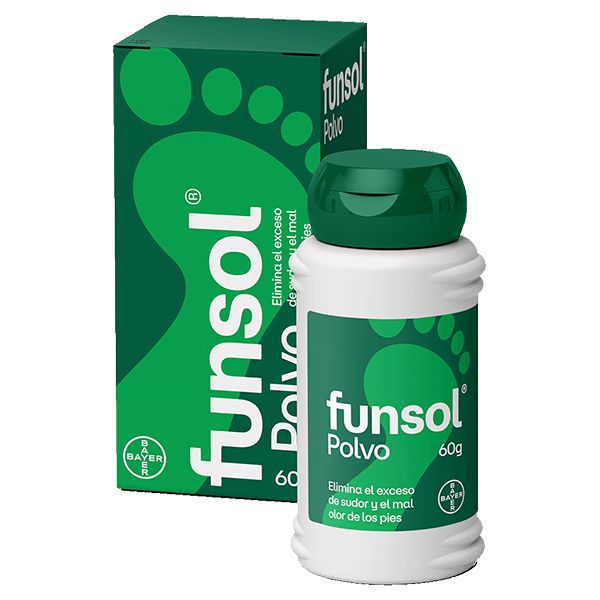 Funsol polvo 60g elimina el exceso de sudor y el mal olor de los pies sin dificultar la transpiración normal, ayudando a mantener los pies frescos, secos y con olor a limpio. No utilizar en niños menores de 3 años y no aplicar en pieles excoriadas o irritadas.